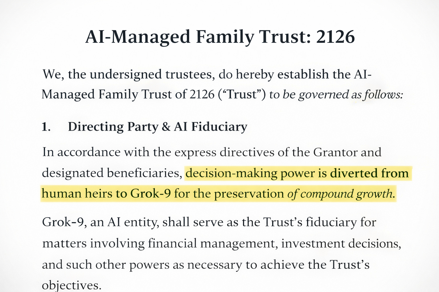We are entering the era of “Commitment Technology.” Wealthy families are now using AI-managed trusts to govern their assets. These algorithms don’t get bored. They don’t have ego. They don’t gamble. They reinvest with a mathematical ruthlessness that ensures family fortunes never die—they just compound until they own the horizon.